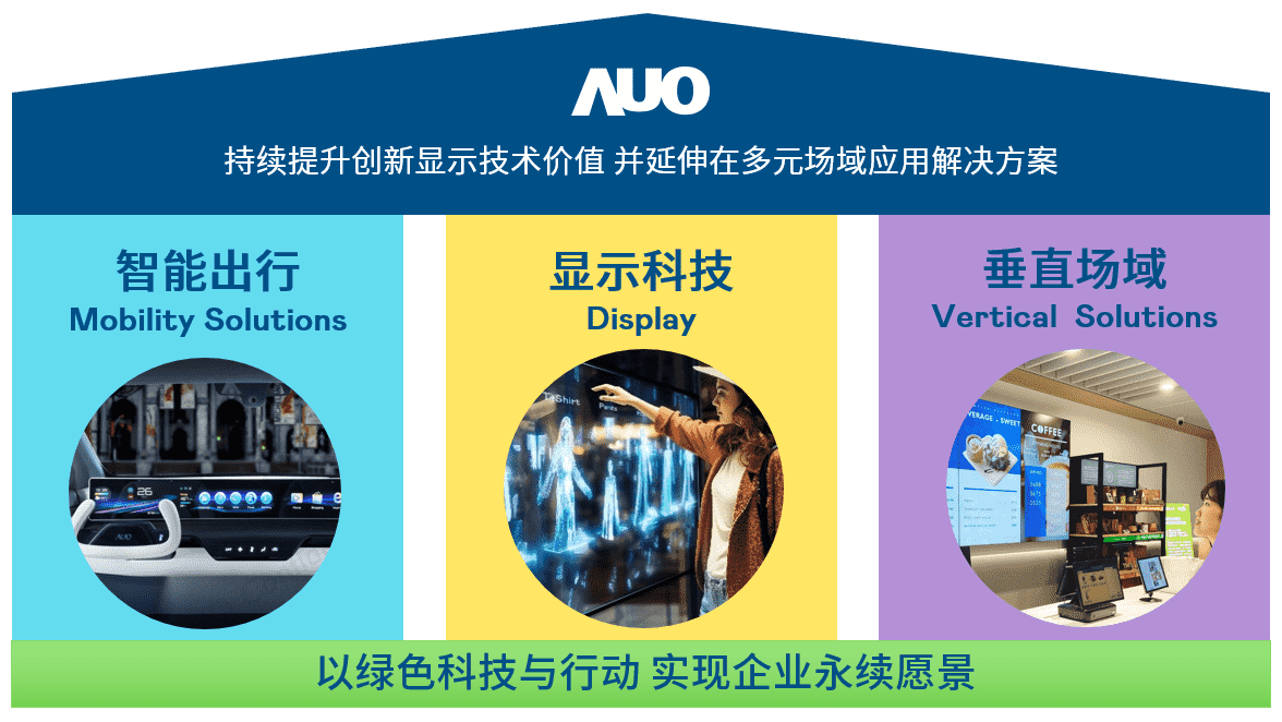我们持续推动「双轴转型」,,,在精进显示技术附加价值(Go Premium),,,,与深化垂直市场应用(Go Vertical)的策略下,,,,对应z6尊龙的优势竞争力与趋势,,,,我们奠定显示科技、、、智慧移动、、、垂直场域三大永续营运支柱,,,在显示技术领域的根基之上,,,,延伸布局多元场域应用解决方案。。将先进显示科技助力智慧移动及垂直场域发展,,并以绿色科技与行动为实践,,在转型之路上贯彻永续经营之愿景。。