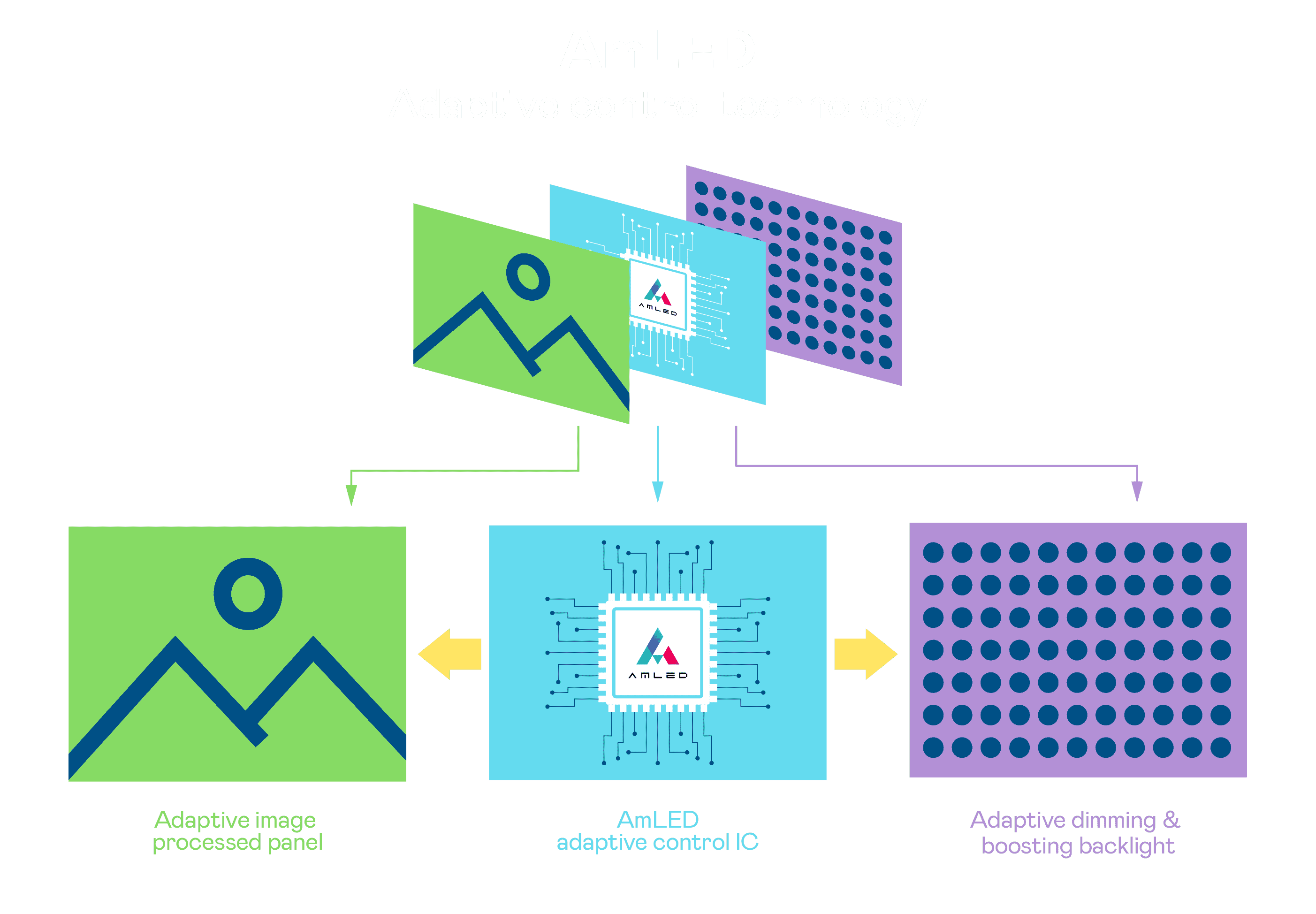AmLED 具备更省电与低蓝光特性。。与一般的 LED 背光显示技术相比,,由于 AmLED 常时处于局部调光状态,,其功耗仅有前者的 50% 左右,,,同时 AmLED 还具备低蓝光特性,,,,满足长时间使用的护眼需求。。。。